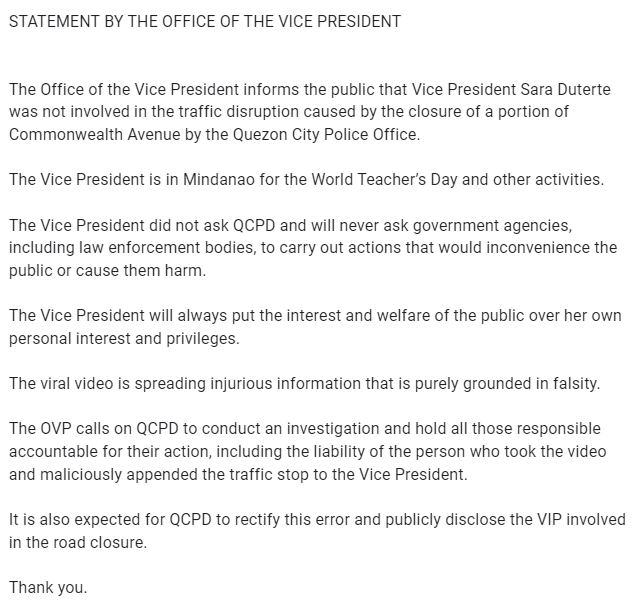 bise-presidente ang nag-viral na video kung saan pinasara ang kalsada sa may Commonwealth