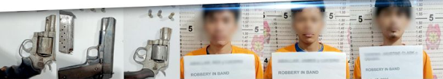 sa tatlong mga suspek ang tatlong baril kabilang na ang 9 mm na ninakaw mula sa
